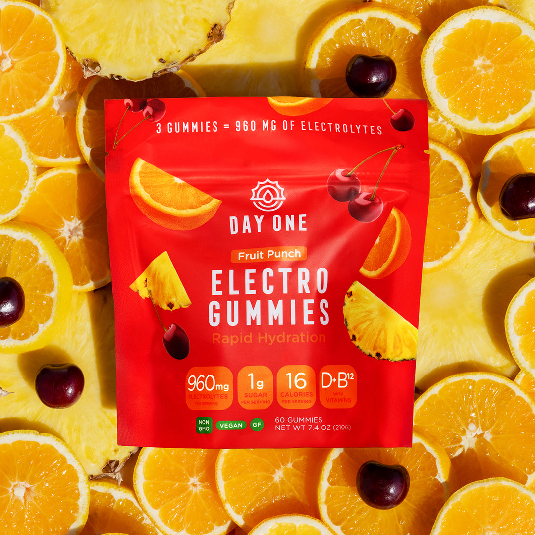 Day One Electrogummies™ are delicious, convenient gummies packed with essential electrolytes designed to keep you hydrated and energized. They're perfect for workouts, busy days, or anytime you need a quick hydration boost.